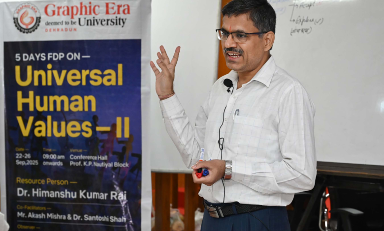 मानवीय मूल्यों को शिक्षा से जोड़ने पर Graphic Era डीम्ड विवि में 5 दिवसीय Faculty Development Program में Experts अभिनव तरीके बताएँगे। इसकी शुरुआत आज हो गई।