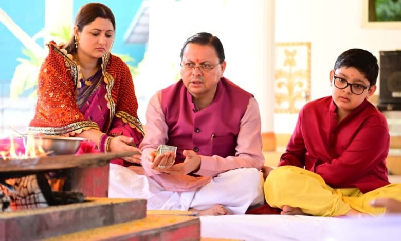 CM पुष्कर सिंह धामी ने नवमी पर पत्नी गीता और बच्चों के साथ अपने आवास में दुर्गा माँ की पूजा-अर्चना कर प्रदेश की खुशहाली-समृद्धि की कामना की। उन्होंने पूरे विधि-विधान से पूजा की और महादेव शिव का जलाभिषेक भी किया।