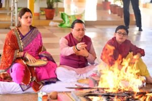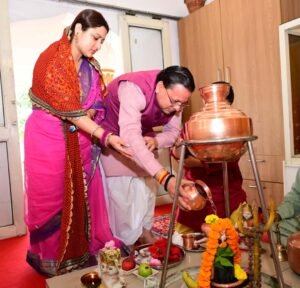 CM पुष्कर सिंह धामी ने नवमी पर पत्नी गीता और बच्चों के साथ अपने आवास में दुर्गा माँ की पूजा-अर्चना कर प्रदेश की खुशहाली-समृद्धि की कामना की। उन्होंने पूरे विधि-विधान से पूजा की और महादेव शिव का जलाभिषेक भी किया।