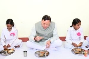 चंपावत के राजकीय बालिका इंटर कॉलेज में CM पुष्कर ने Midday Meal खुद भी खाया और भोजन माता का स्वागत किया