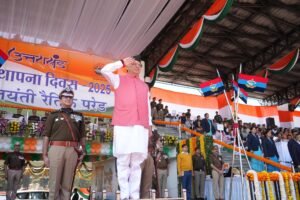 राज्य के तौर पर स्थापना की Silver Jubilee मना रहे उत्तराखण्ड के स्थापना समारोह में शुक्रवार को राज्यपाल लेफ्टिनेंट जनरल गुरमीत सिंह (सेनि) एवं मुख्यमंत्री पुष्कर सिंह धामी ने प्रदेश के लोगों को राज्य और देश के विकास से जुड़े संदेश दिए। राज्यपाल ने रैतिक परेड का निरीक्षण कर सलामी ली। CM पुष्कर सिंह धामी ने अहम ऐलानों की झड़ी लगा दी।