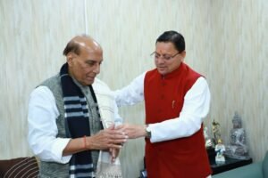 मुख्यमंत्री पुष्कर सिंह धामी ने नई दिल्ली में रक्षा मंत्री (MoD) राजनाथ सिंह से शिष्टाचार   मुलाक़ात के दौरान Air Force Audit Branch को देहरादून में बनाए रखने और ग्वालदम–नंदकेसरी–थराली–देवाल–मुन्दोली–वाण मोटर मार्ग के रख-रखाव का कार्य लोक निर्माण विभाग से ही कराए जाने का अनुरोध किया।