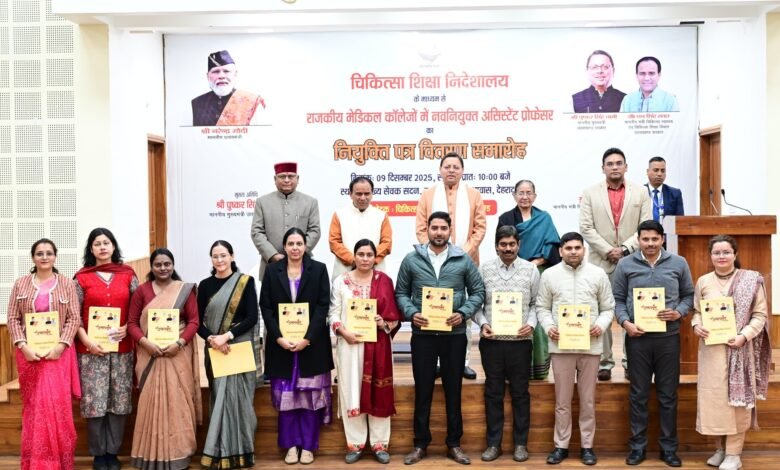 मुख्यमंत्री पुष्कर सिंह धामी ने मंगलवार को मुख्य सेवक सदन, मुख्यमंत्री आवास में चिकित्सा सेवा चयन बोर्ड के माध्यम से राजकीय मेडिकल कॉलेजों के लिए चुने गए 142 असिस्टेंट प्रोफेसर्स को नियुक्ति पत्र प्रदान करते हुए उम्मीद जताई कि वे चिकित्सा के क्षेत्र को सशक्त बनाने की दिशा में महत्वपूर्ण भूमिका निभेंगे।