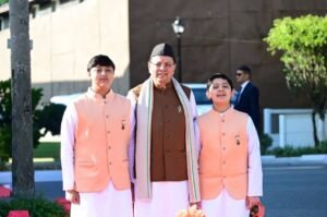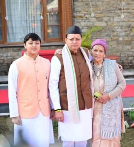 गणतन्त्र दिवस पर माँ-पत्नी और बेटों के साथ मुख्यमंत्री पुष्कर सिंह धामी अपने आवास पर ध्वजारोहण के बाद