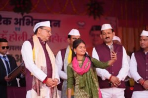 CM पुष्कर सिंह धामी आज लोहाघाट में काली कुमायूं होली महोत्सव में होली के रंग और जोश में सराबोर नजर आए। होल्यारों संग जम के थिरके।अपनी विधानसभा क्षेत्र चंपावत को विकास योजनाओं की सौगातों से लादा और विख्यात माँ पूर्णागिरि मेला-2026 का अपने हाथों आगाज किया। 74.54 करोड़ रुपये की विकास योजनाओं का लोकार्पण एवं शिलान्यास किया। मौके पर पहुँच के पहली Girls Sports College के निर्माण कार्य का जायजा लिया। मुख्यमंत्री को अपने बीच देख होली महोत्सव में लोगों और महिलाओं में खासा उत्साह दिखाई दिया। उन्होंने सरकार के मुखिया के साथ Selfie लेने में खूब दिलचस्पी दिखाई। मुख्यमंत्री भी लोगों के साथ कदम से कदम मिला के नृत्य में शरीक हुए और लोगों को रोमांचित किया। लोगों में उनके साथ हाथ मिलाने और उनकी तस्वीर Mobile कैमरे में कैद करने की होड़ भी नजर आई।