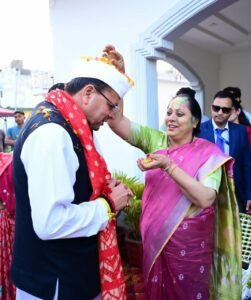 माँ बिसना देवी और बहन ने भी CM पुष्कर सिंह धामी को स्नेहपूर्वक अबीर गुलाल लगाया। PSD ने भी माँ को गुलाल लगा के चरण स्पर्श किए