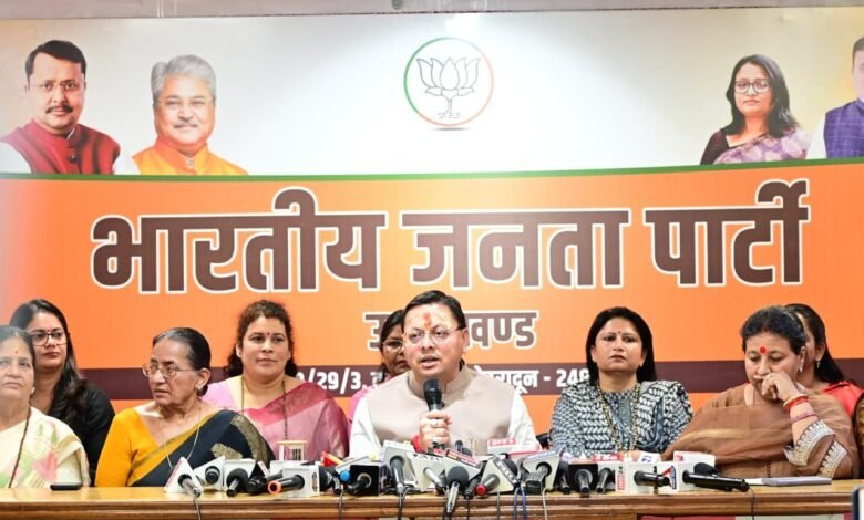 CM पुष्कर सिंह धामी ने आज भाजपा प्रदेश मुख्यालय में पत्रकारों से कहा कि नारी शक्ति वंदन अधिनियम पर विपक्ष का महिला विरोधी रुख साफ और सामने आ गया है। उसने महिलाओं की सत्ता में अधिक मजबूती से भागीदारी न करने देने की साजिश रचते हुए विधेयक को संसद में गिरा दिया। यह विषय देश की आधी आबादी के अधिकारों, सम्मान और सशक्तिकरण से जुड़ा हुआ ऐतिहासिक अवसर है।