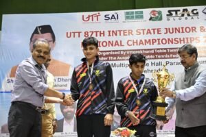 Chetan Gurung बेहतरीन Come Back कौशल और मुश्किल वक्त में भी होश-जोश और आक्रामकता कायम रखते हुए असम के प्रियानुज भट्टाचार्य ने तमिलनाडू के PB अभिनंद को सनसनीखेज Final में 4-2 से पराजित कर 87th Junior and Youth National Table Tennis Championship में Under-19 का एकल खिताब जीत लिया। Commonwealth Table Tennis Federation के President और हरियाणा के पूर्व Deputy CM दुष्यंत चौटाला समेत TTFI के ओहदेदारों ने विजेताओं को Trophy प्रदान की। दुष्यंत ने प्रतियोगिता को ऐतिहासिक तौर पर सफल बनाने में अहम मदद करने के लिए CM पुष्कर सिंह धामी और उत्तराखंड सरकार की तारीफ करते हुए आभार प्रकट किया। प्रियानुज ने अभिनंद को 0-2 सेट से पिछड़ने,2-2 सेट से बराबरी की। आखिरी सेट में भी काफी पिछड़ने के बावजूद जीत दर्ज कर प्रतिद्वंद्वी को खिताबों की Hattrick बनाने से रोक के निराश कर दिया।
