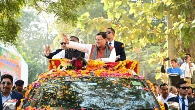 Home Town खटीमा में CM का `पुष्कर-पुष्कर’ से जोरदार welcome:फूलों की बारिश में नहाए:थारू IC में 34 Cr के विकास कार्यों का शिलान्यास:1 लाख Cr का Budget-Land Law पास कराने के बाद पहली बार पहुंचे अपने शहर