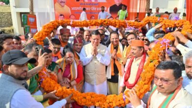 `कमल’ प्रत्याशियों के लिए CM पुष्कर सुबह से शाम तक दर्रे-पहाड़-चोटी-मैदान लांघते रहे:अजय टम्टा-अजय भट्ट के लिए जुटाए वोट-समर्थन:डीडीहाट में पदयात्रा का बने हिस्सा
